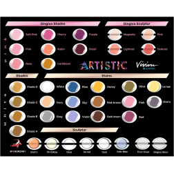 Vision 3D Artistic e Vision 3D Artistic Gingiva sono dei kit di masse ceramiche pastose a effetto opalescente e fluorescente per colorare, strutturare e glasare. È possibile raggiungere risultati estetici paragonabili a quelli di restaurazioni stratificate con i tempi di una colorazione.