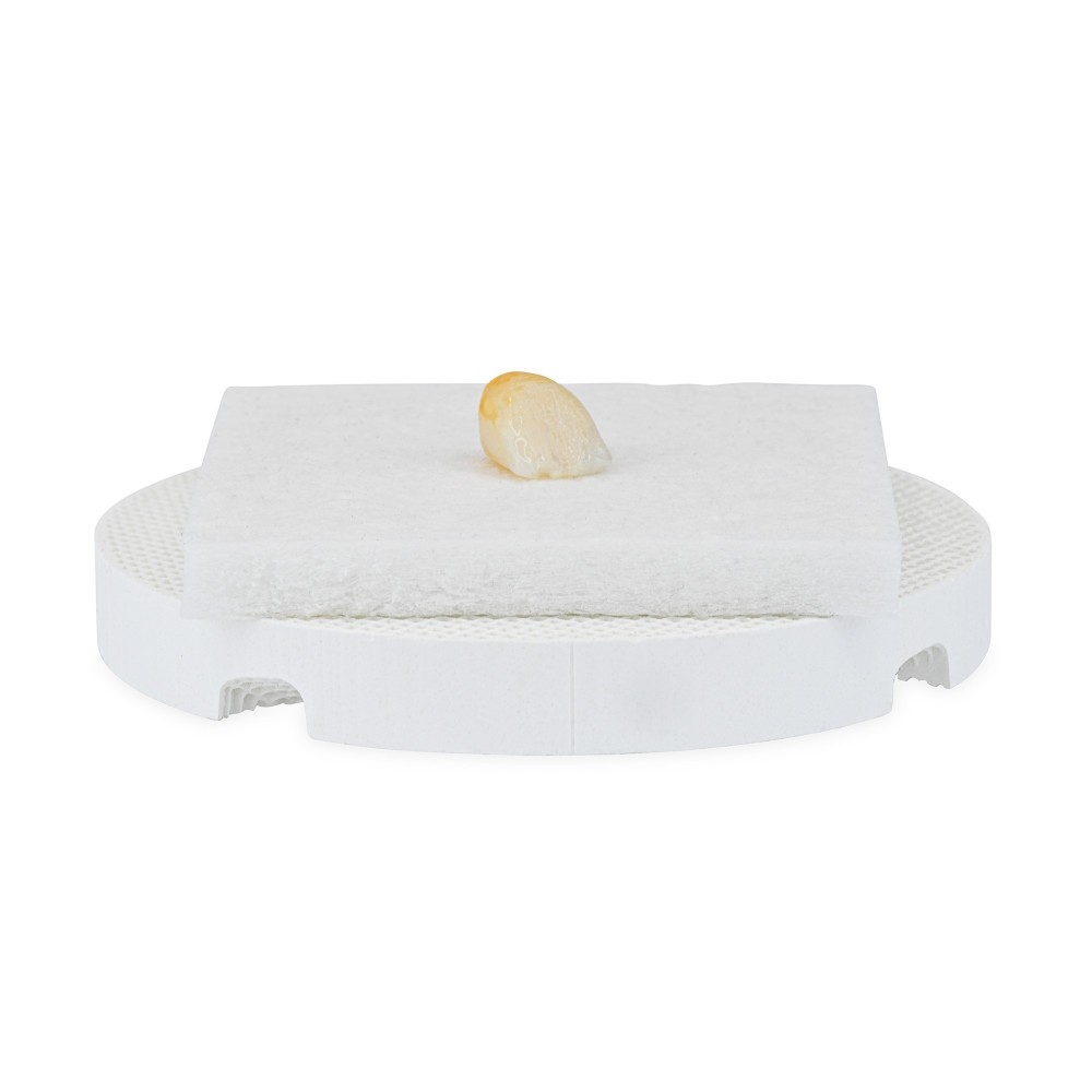 Biosoluble* refractory mat made of compressed fiber for kiln firing ceramic elements, veneers, bridges and ceramic samples. It does not contaminate, does not burn fibers and does not contain binders or lubricants that can cause smoke or bad odor.