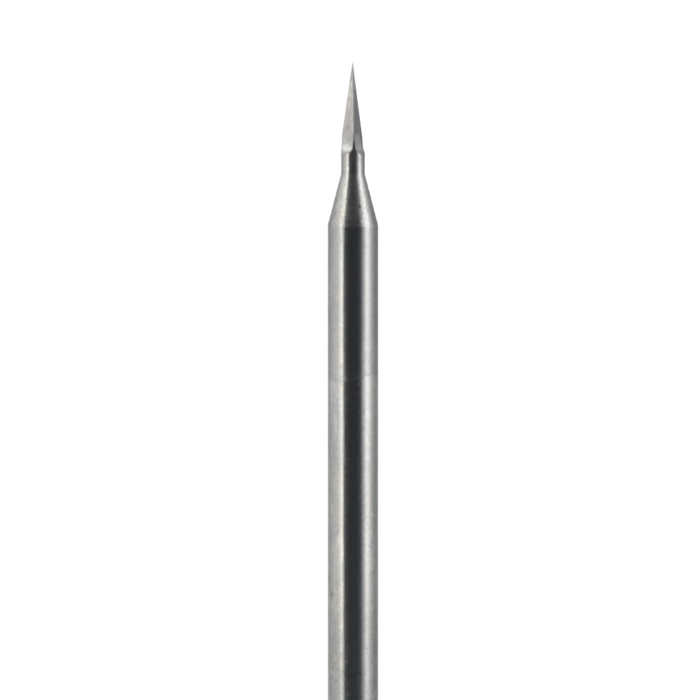 Three-sided tungsten carbide cutter with 1.1mm diameter; excellent for marking gingival grooves in plaster for the preparation of pre-filing temporaries, for taking up and opening grooves in resin temporaries and/or teeth and for cleaning and marking papillae and/or gingival grooves in removable resin prostheses. With tip.