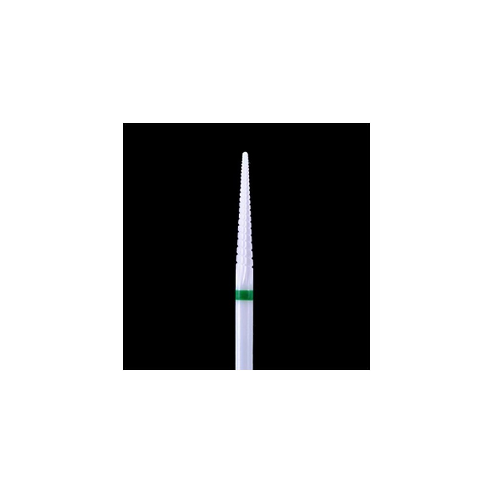 Cutter used for finishing and roughing thermoplastic and thermoinjectable materials, nylon, polyamide, acrylic resins, raw zirconium (presintered), peek, etc. It has the particularity of not heating, as zirconium oxide has low thermal conductivity, so it does not knead and makes processing more comfortable and smooth. Very long life.