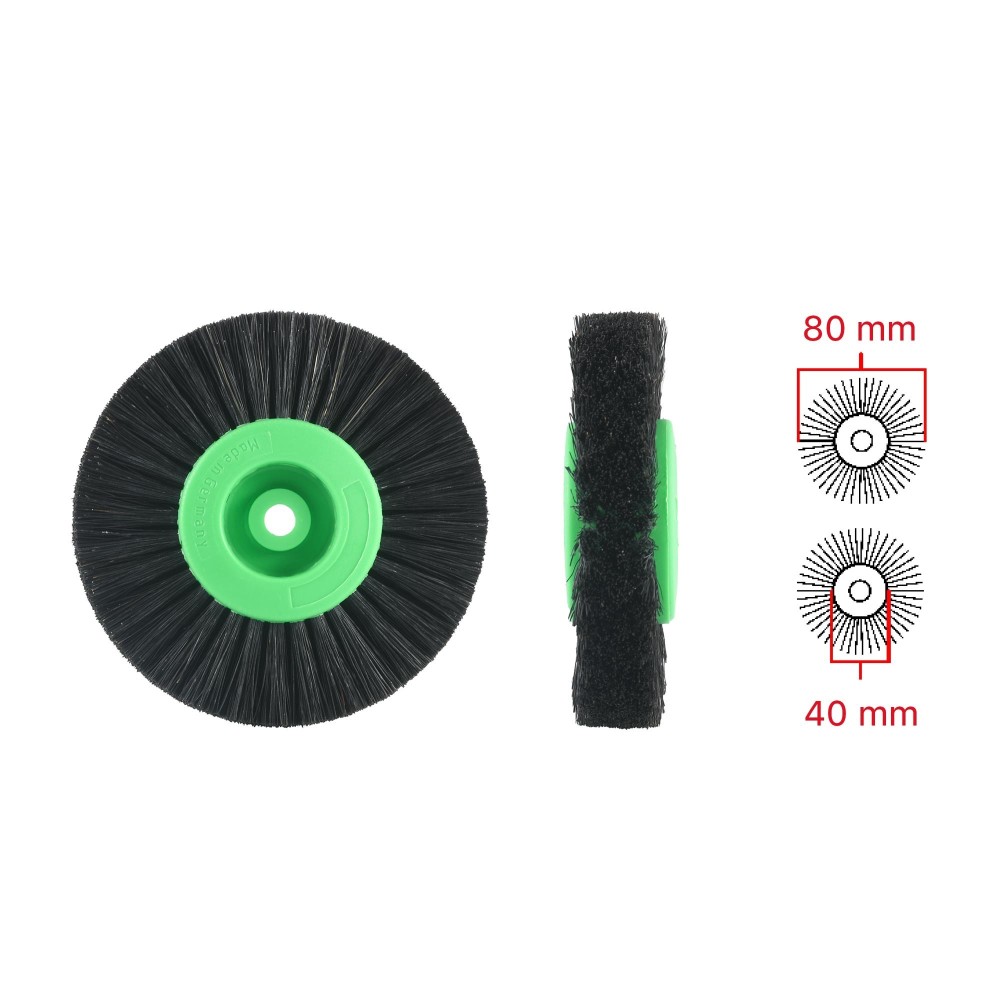 Plastic center brush with 4-row black Chungking bristles. Flat profile.