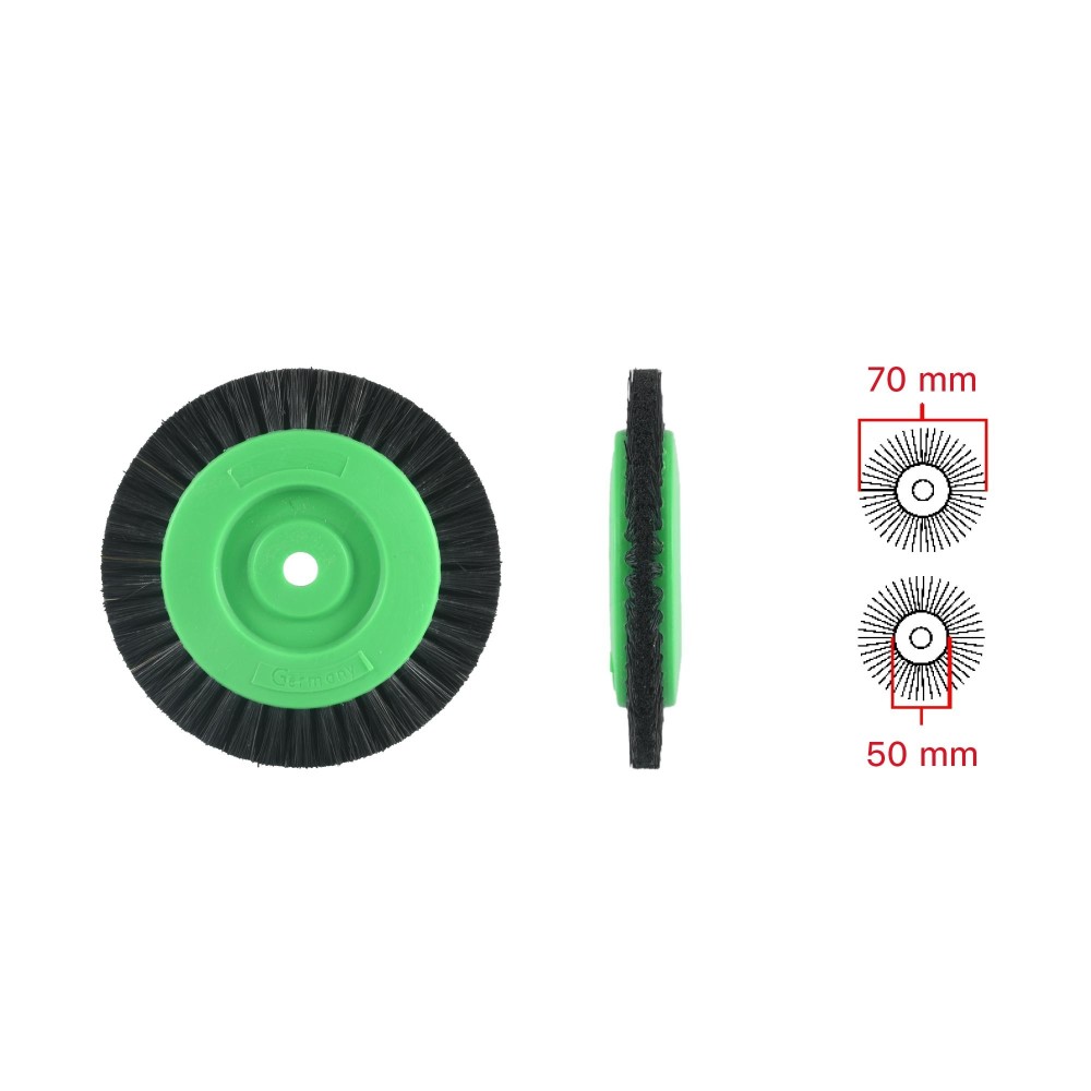 Plastic center brush with 2-row black Chungking bristles. Pointed profile.