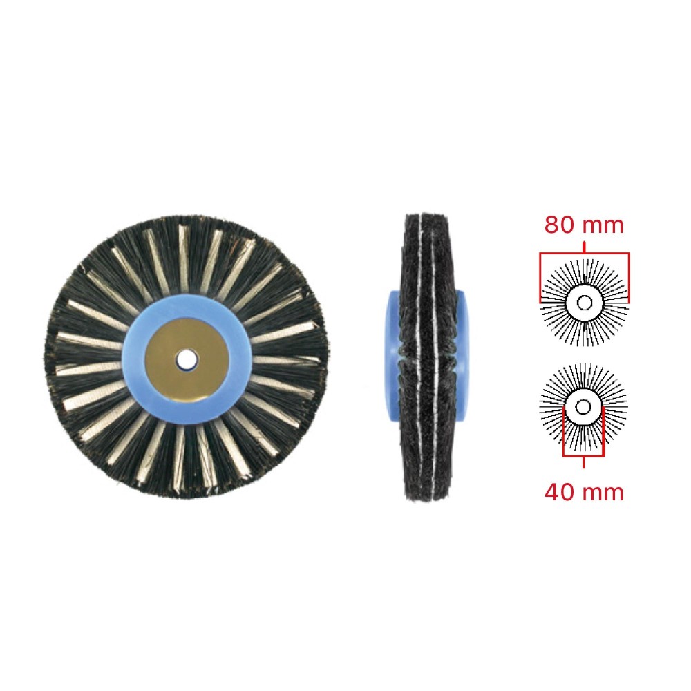 Plastic center brush with 2-row black Chungking bristles and soft canvas insert (2 x 3 layers). Pointed profile.