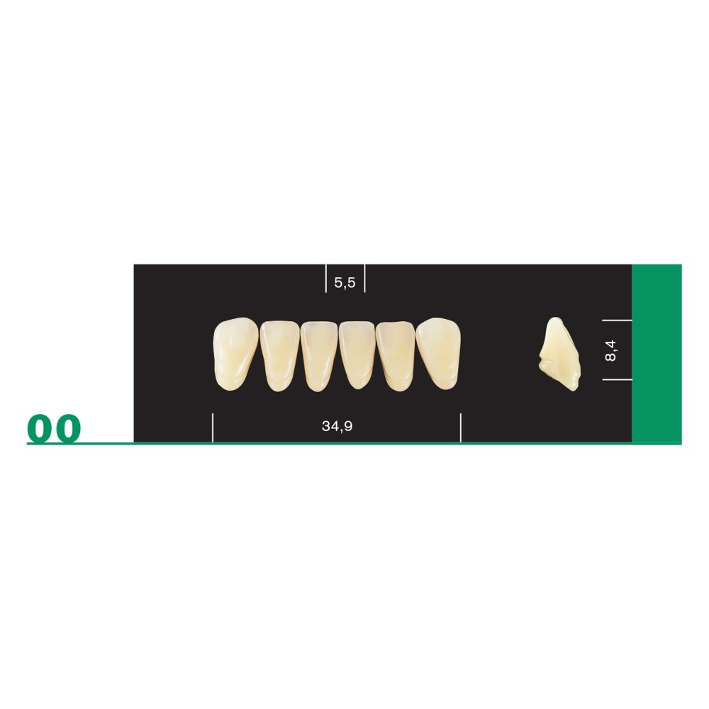 Available in the colors A1 - A2 - A3 - A 3.5 - A4 - B3 - C3 - D3 and in a complete assortment of 48 front and 20 rear shapes.