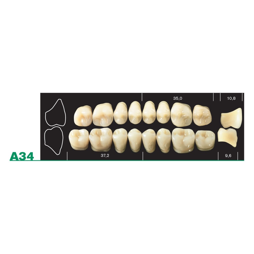 Major Plus is a 4-layer acrylic artificial tooth designed to achieve the highest functional and aesthetic standards of modern prosthetic technique. Made of acrylic material, it has differentiated back shapes of an Anatomical and Technical type. The new shapes of the front S, B, M and L having a wider heel allow for a strong reduction in the interstitial space.