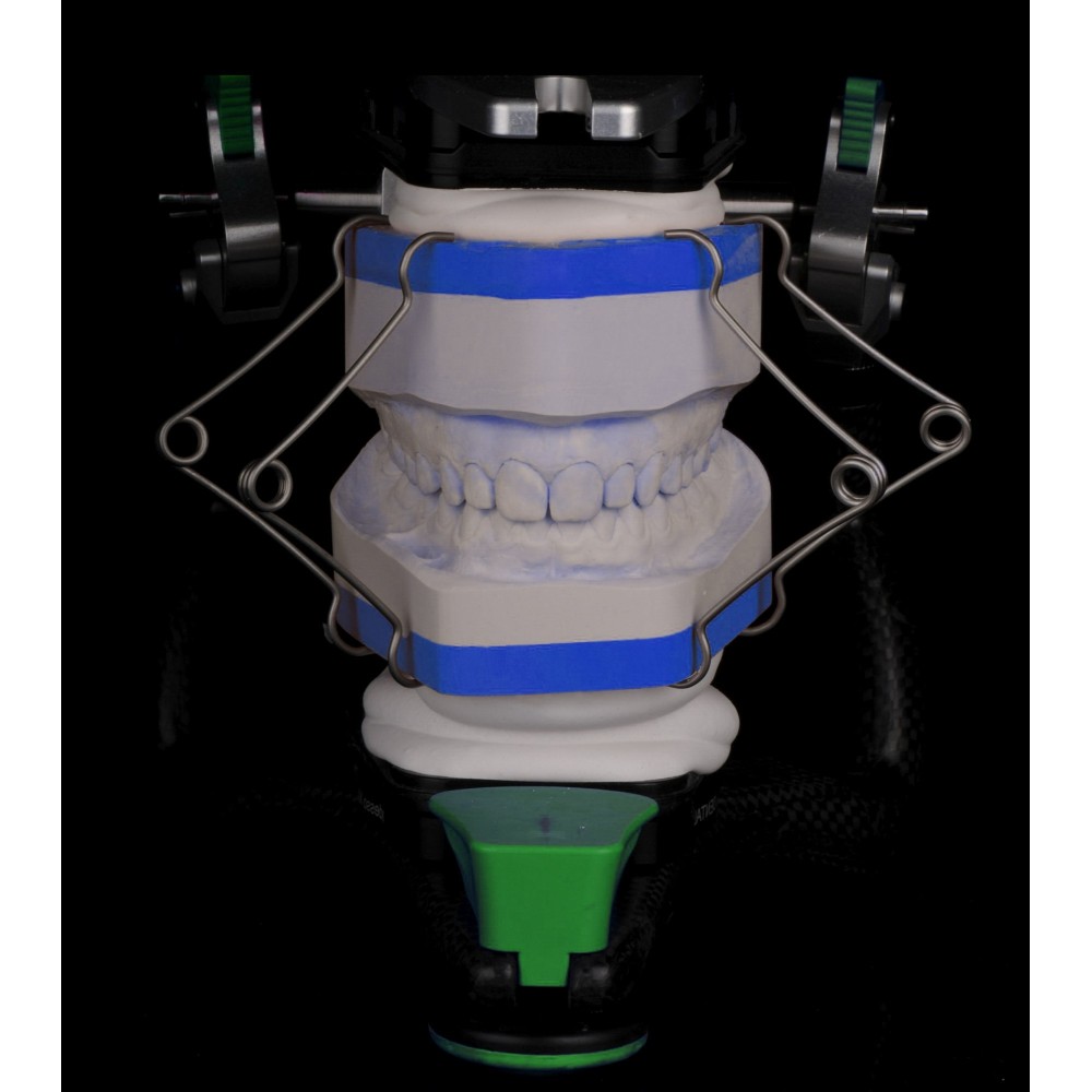 The articulation clamps are not recognized by the scanner due to their metal surface and therefore remain invisible, simple and quick to apply. The use of clamps makes it unnecessary to clamp the models with wax or hot glue; If you do not use these materials, the models remain clean.