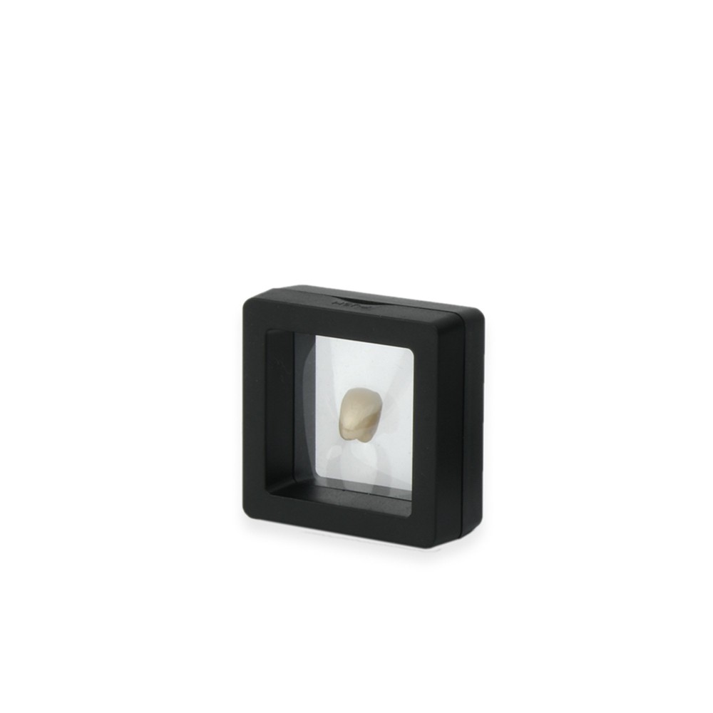 Plastic box for transport and presentation of works, with double transparent polyethylene membrane that keeps the object locked.