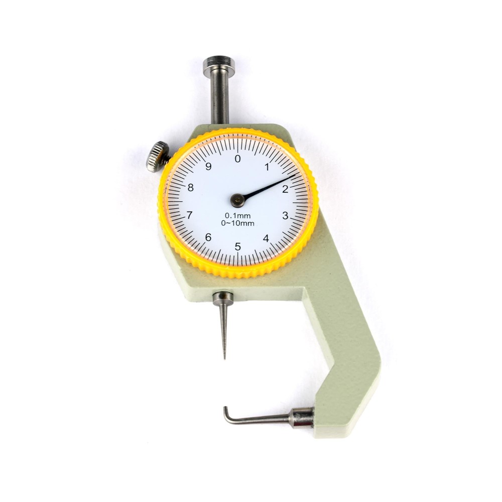 Precise, for measuring the material thickness of dental objects. Easy zeroing adjustment. Measuring range from 0-10 mm with 0.1 mm graduation.