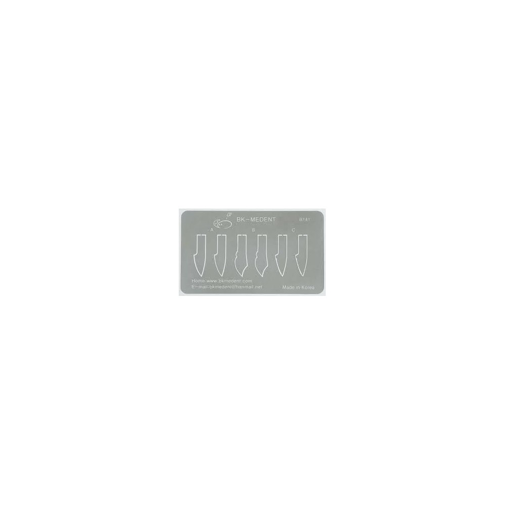 Nel set sono comprese 6 lame di forma diversa, intercambiabili, molto sottili e flessibili. Hanno una punta affilata per la riduzione della dentina, la separazione degli spazi interdentali e la modellazione di solchi.